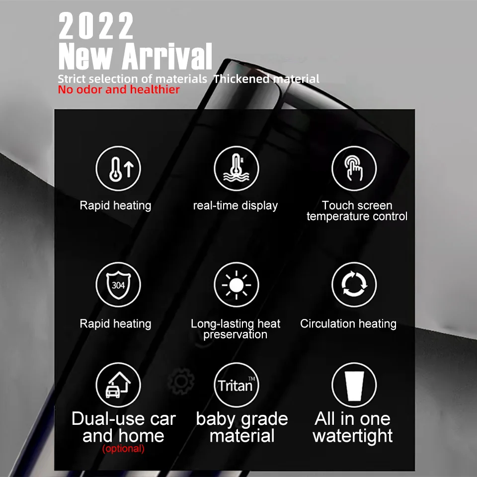 12V 24V Car Heating Cup Electric Kettle Stainless Steel Smart Temperature Control Touch LCD Display Travel Coffee Mug Warmer