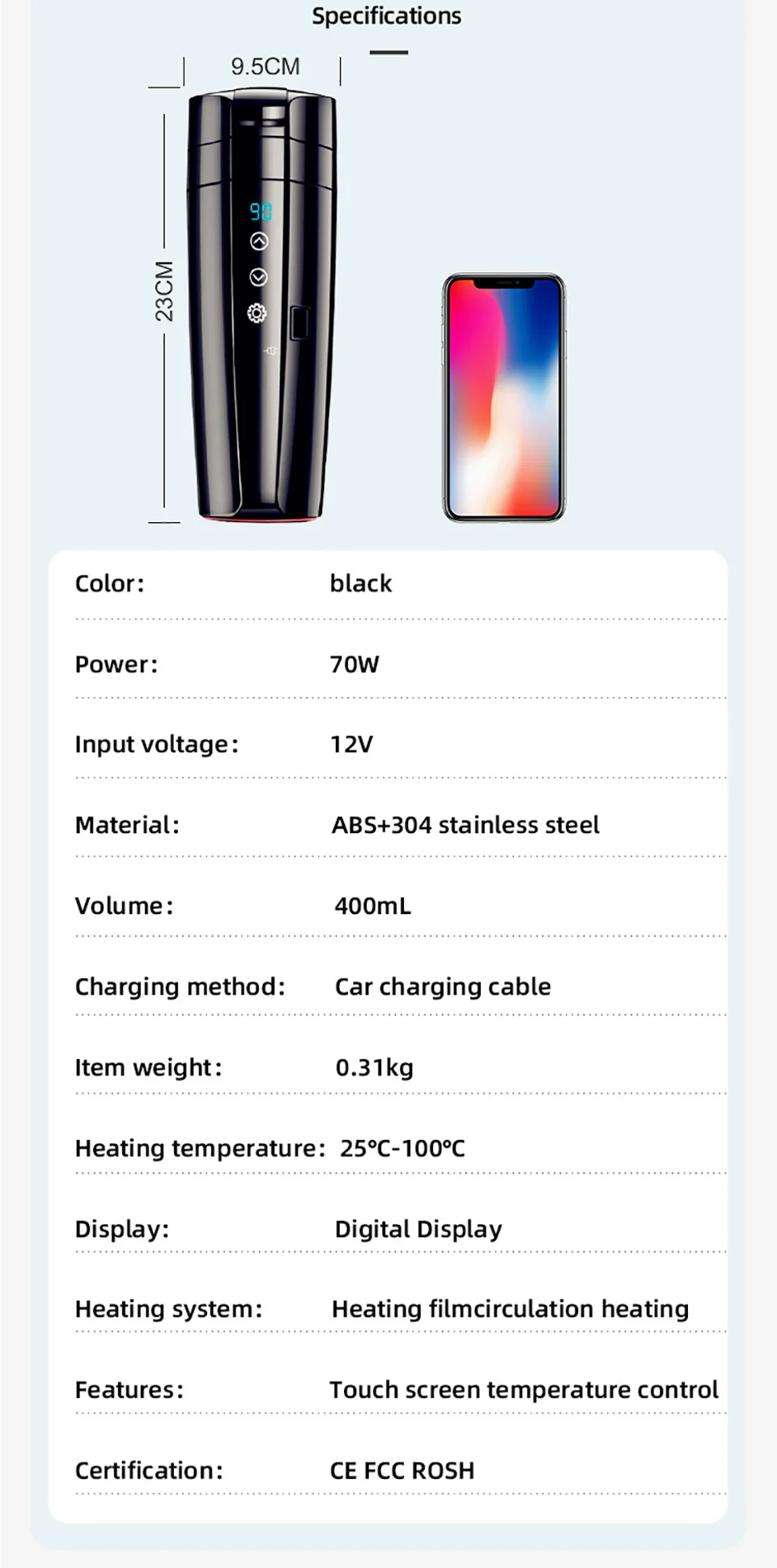 The car heating cup can also be used for instant noodles, coffee, green tea, lemonade, oatmeal, milk powder, etc., driving, pour every moment of warmth into your journey.