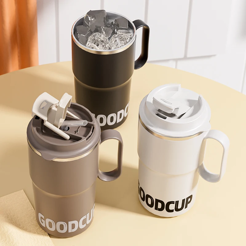 700ML Stainless Steel Insulated Thermos Cup with Handle & Straw