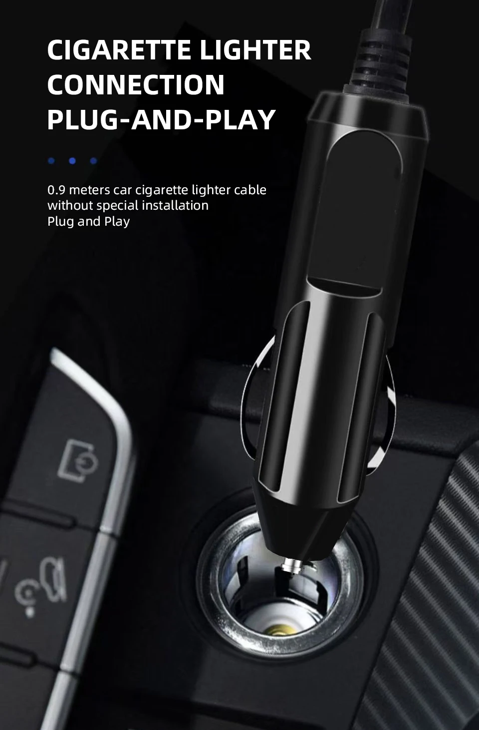 Equipped with a 0.9-meter car cigarette lighter cable, it requires no special installation—just plug and play. Simple, quick, and ready to use anytime!