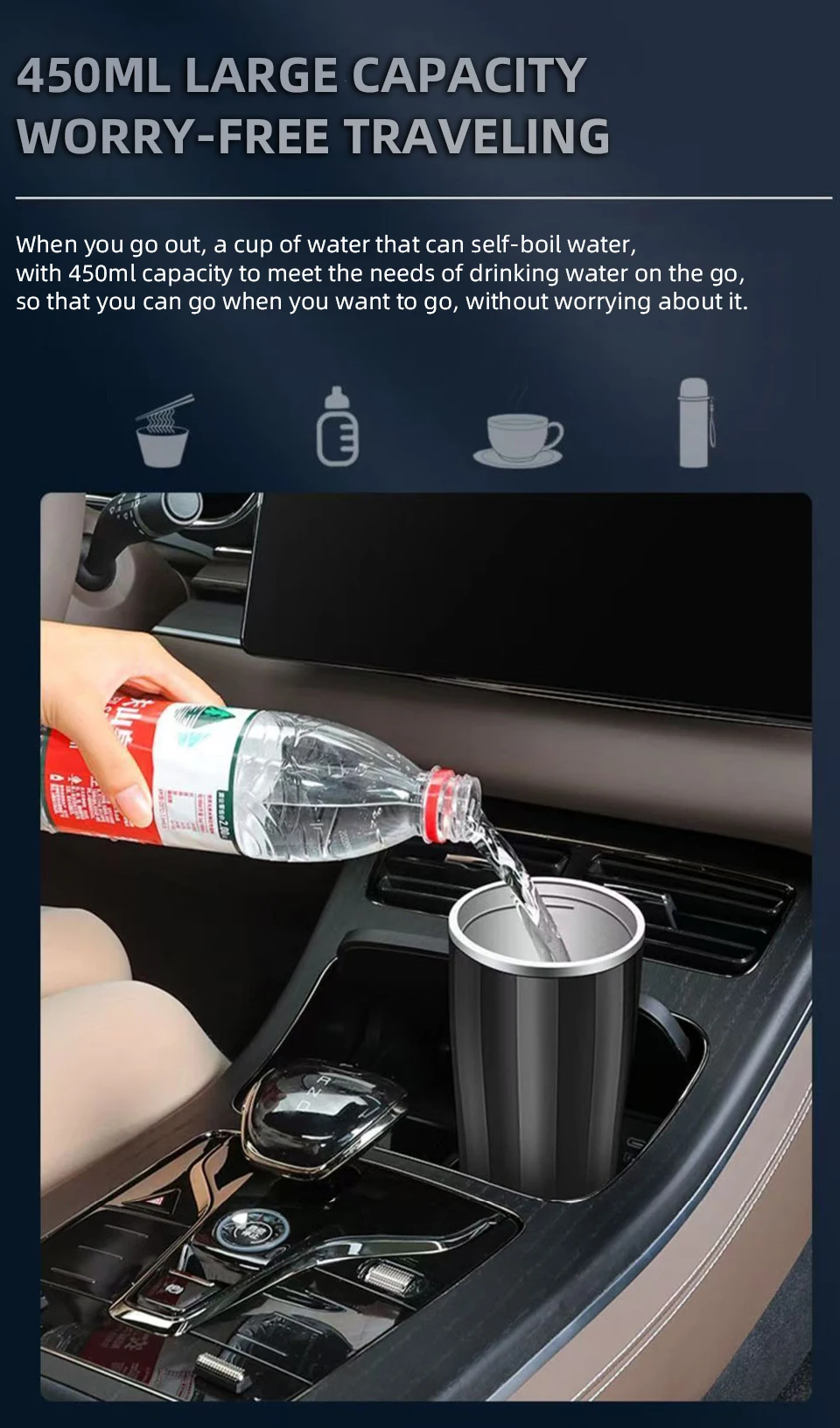 Take a self-heating water cup with 450ml capacity on the go, perfect for meeting your hydration needs anytime, anywhere. Travel freely without a second thought—stay refreshed wherever life takes you!