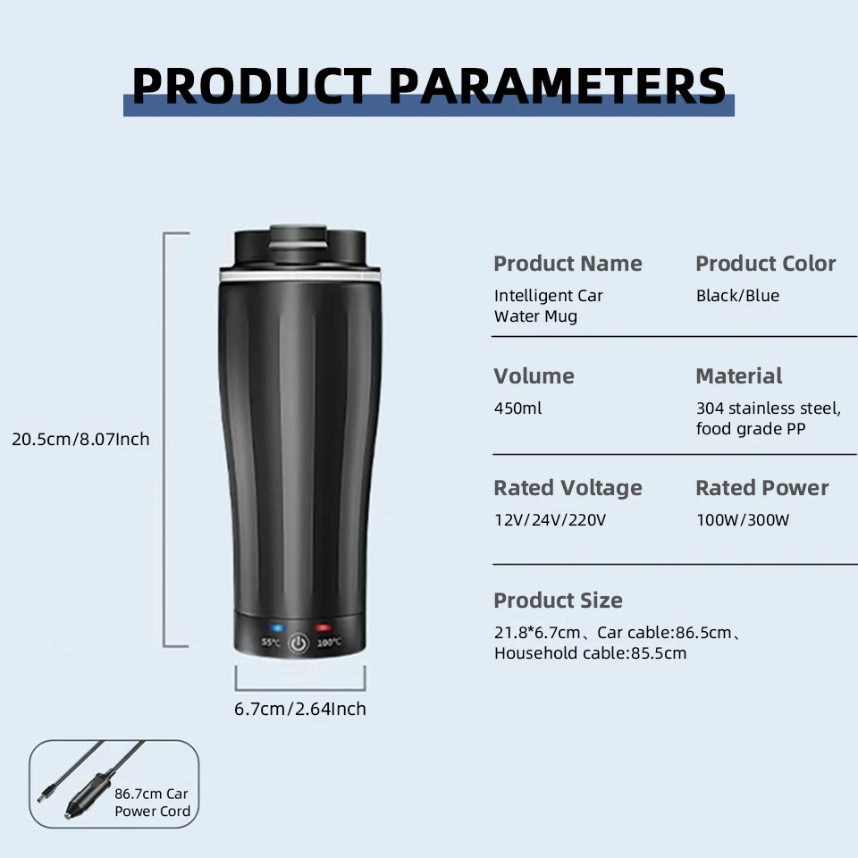 Take a self-heating water cup with 450ml capacity on the go, perfect for meeting your hydration needs anytime, anywhere. Travel freely without a second thought—stay refreshed wherever life takes you!